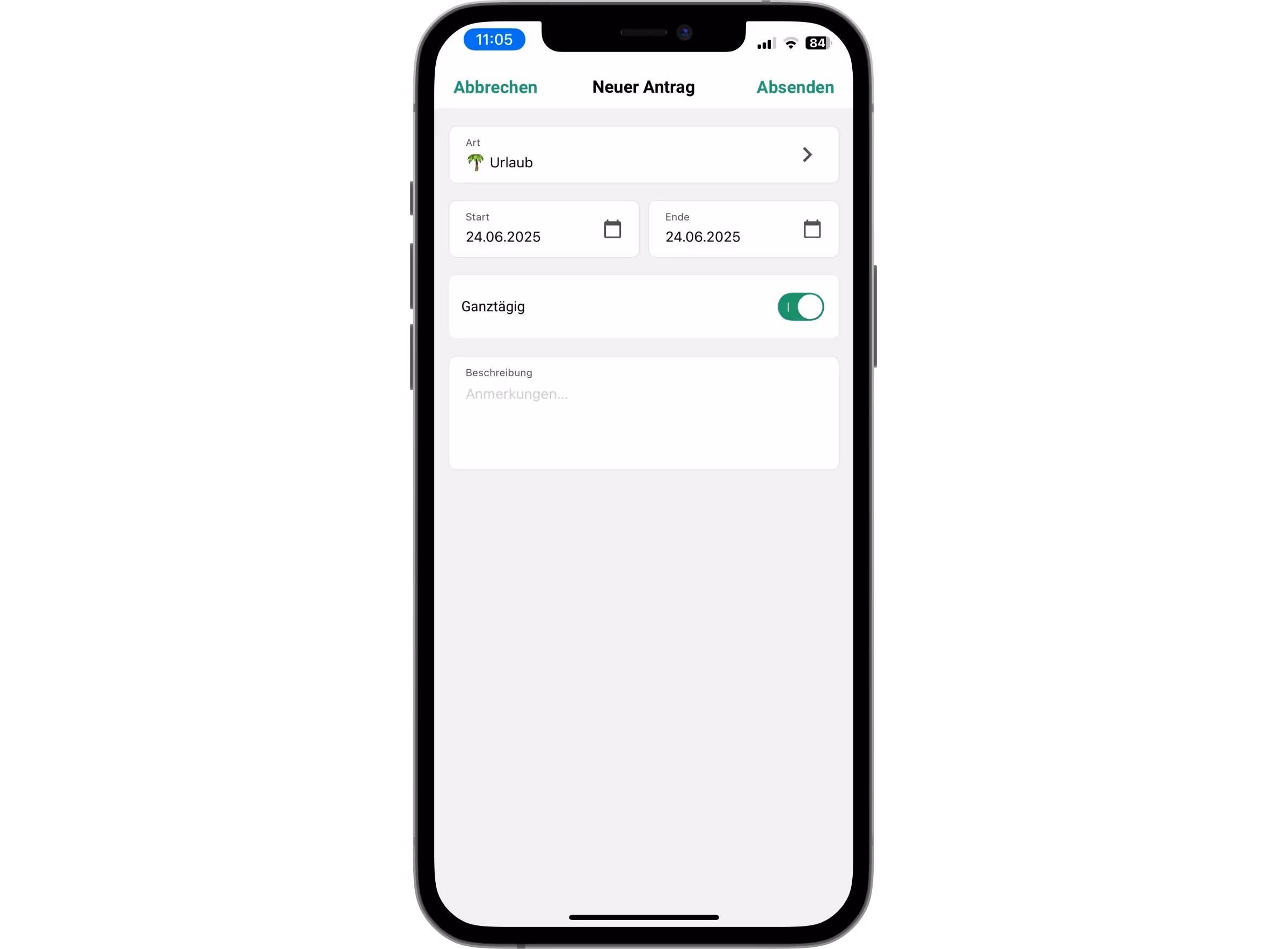 - Schneller Antrag: Eure Mitarbeitenden mit der Rolle “Büro” oder “Mobil” beantragen Urlaub in Sekunden. Entweder über die Mobile App oder in der Browser-Anwendung unter “Zeiten”.