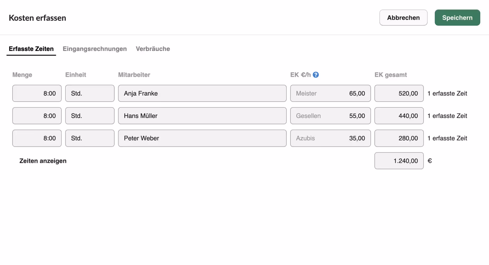 Sobald du in der Kalkulation mit Lohnpositionen arbeitest, wird der Anteil direkt im jeweiligen Dokument angezeigt – das spart Zeit und reduziert Fehler.
