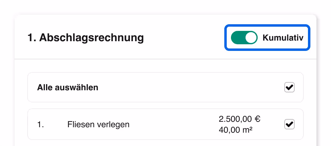 Mehr Flexibilität bei kumulativen Abschlagsrechnungen 📈