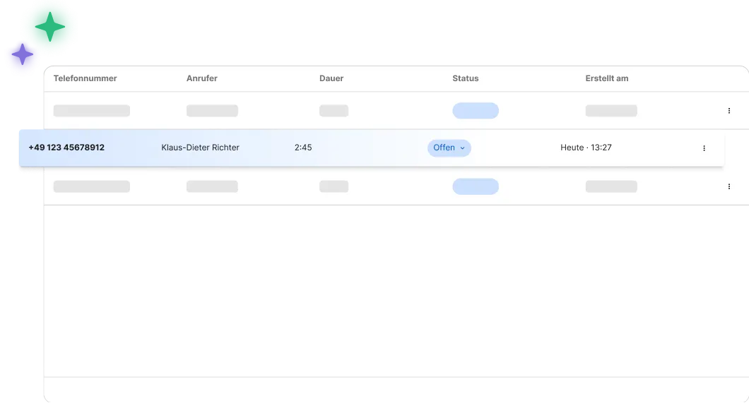 PORTA erkennt bestehende Kunden und ordnet Anrufe automatisch zu. Neue Kontakte werden direkt angelegt – inklusive aller relevanten Informationen aus dem Gespräch. So entsteht eine saubere Kundendatenbank, ohne dass du etwas doppelt erfassen musst.