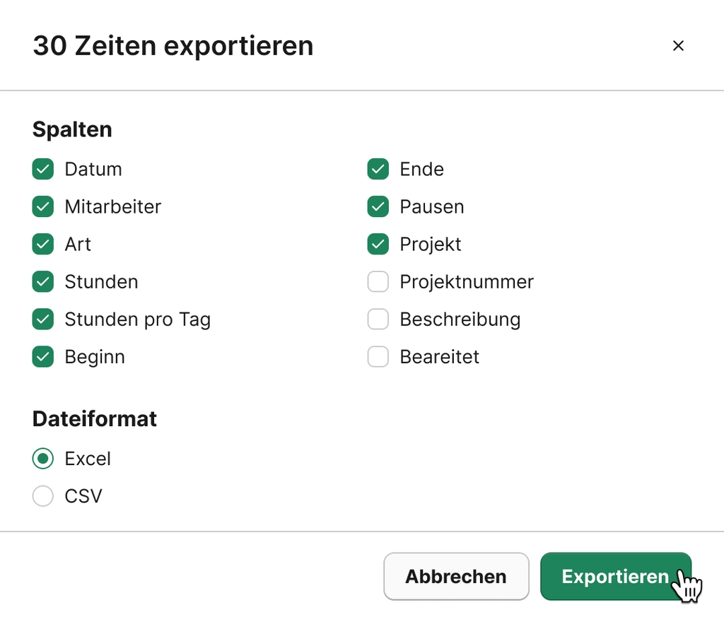 Verbesserungen bei Zeiten und Zeiten-Export ⏱️