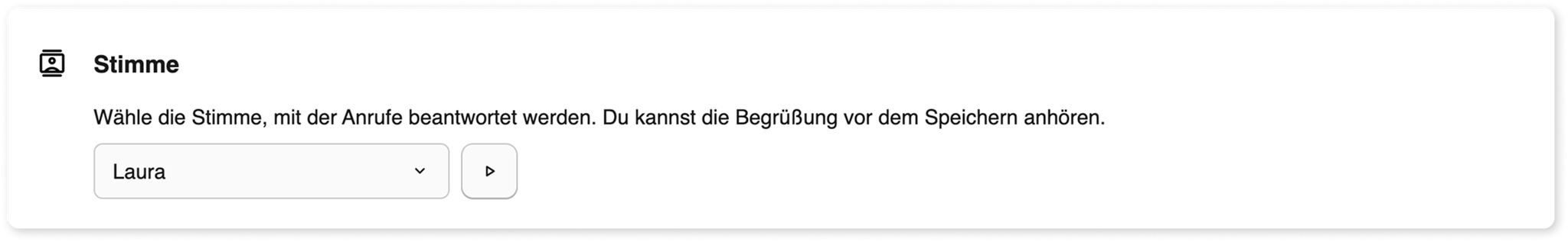 Gib deinem Assistenten die passende Stimme. In den Einstellungen wählst du aus mehreren weiblichen und männlichen Stimmen – und hörst dir über die Live-Vorschau direkt an, wie die Begrüßung klingt, bevor du dich entscheidest.