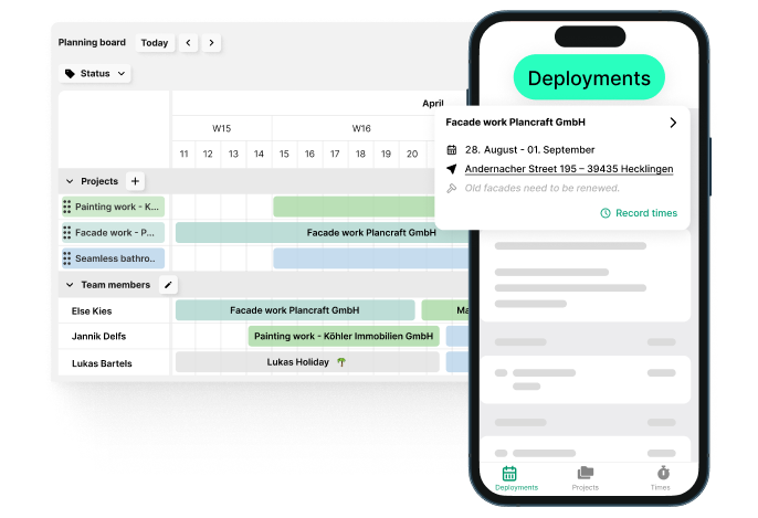 Planning made easy: With the planning board from plancraft, you can coordinate your projects, deployments, and crews in no time. Track the progress of your projects in real time and always stay on top of your teams – ensuring you secure higher margins and gain more free time.
