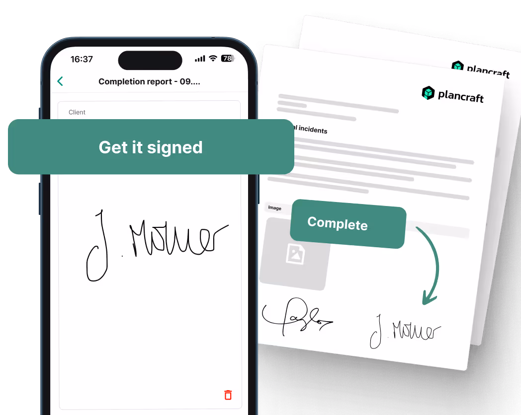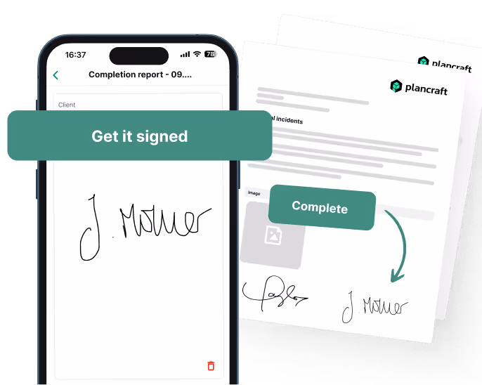 Speed up project completion with digital signatures. With plancraft, you can present documents for your customer’s signature directly—wherever you are. Pull out the tablet, get the signature, and the project is done.