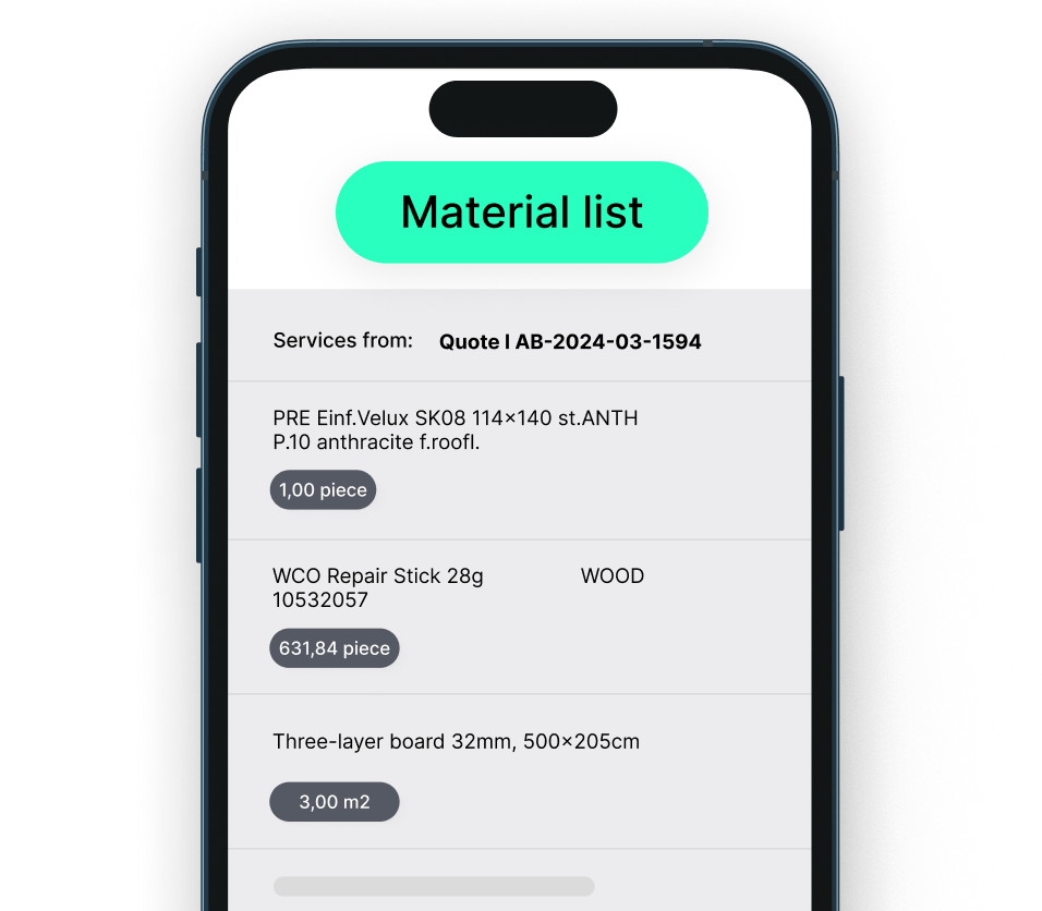 Track and manage materials right on-site. With plancraft, you can monitor stock levels, follow deliveries, and document material usage accurately—for optimal cost control and less waste.