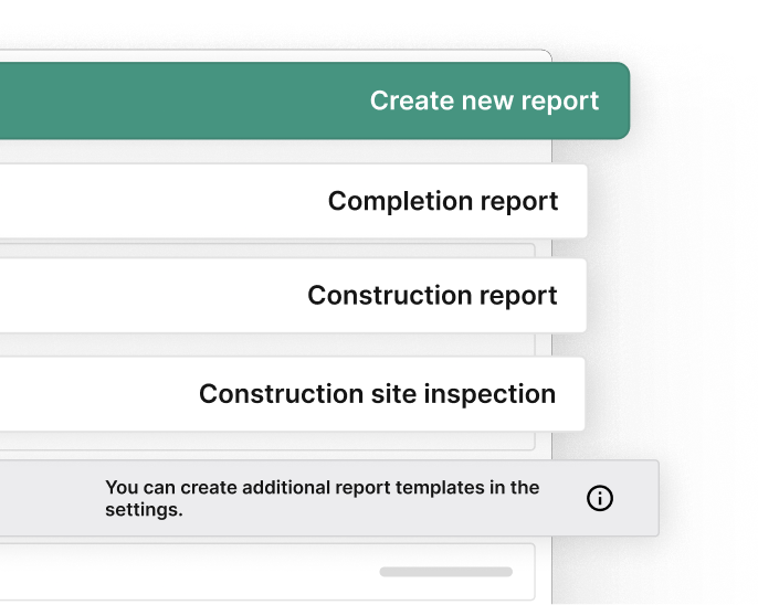 Use pre-made or custom report templates that perfectly fit your project. With plancraft’s templates, you can speed up your documentation and work even more efficiently.