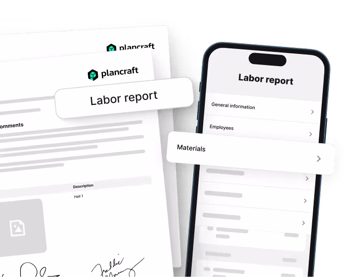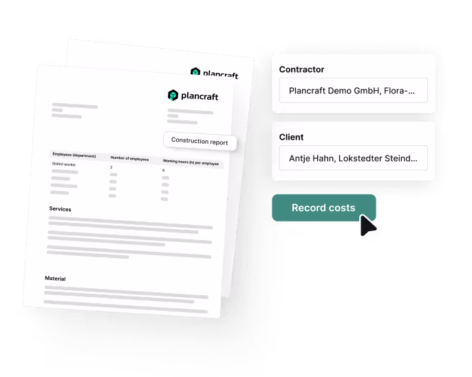 Create labor reports in real-time and transparently document progress and resource usage. Track work hours, material consumption, and extra costs directly on the job site—all immediately available in the office.