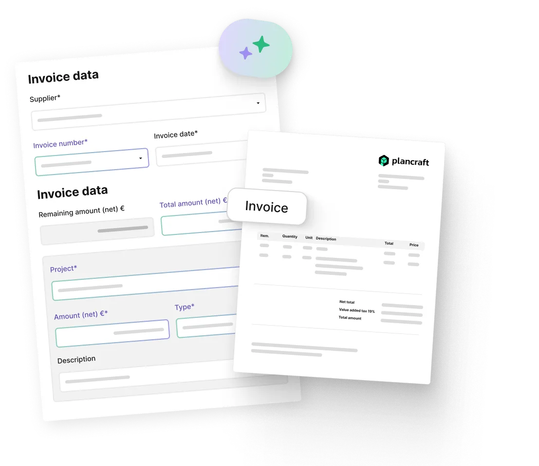 With plancraft, you can capture incoming invoices in seconds - thanks to AI-supported scanning without any manual input. Invoices are automatically read, assigned to the correct projects, and flow directly into your post-calculation. This way, you always have your costs in view and all documents stored in your digital construction file.