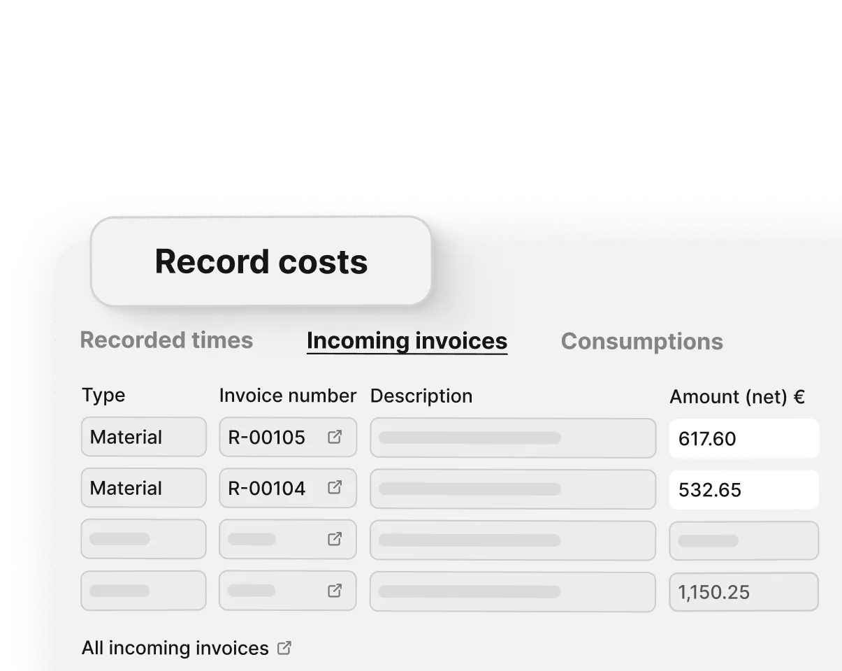 As soon as you assign an invoice to a project, the costs automatically appear in the recalculation. This ensures that all expenses are fully and accurately recorded, without duplicate work or errors.
