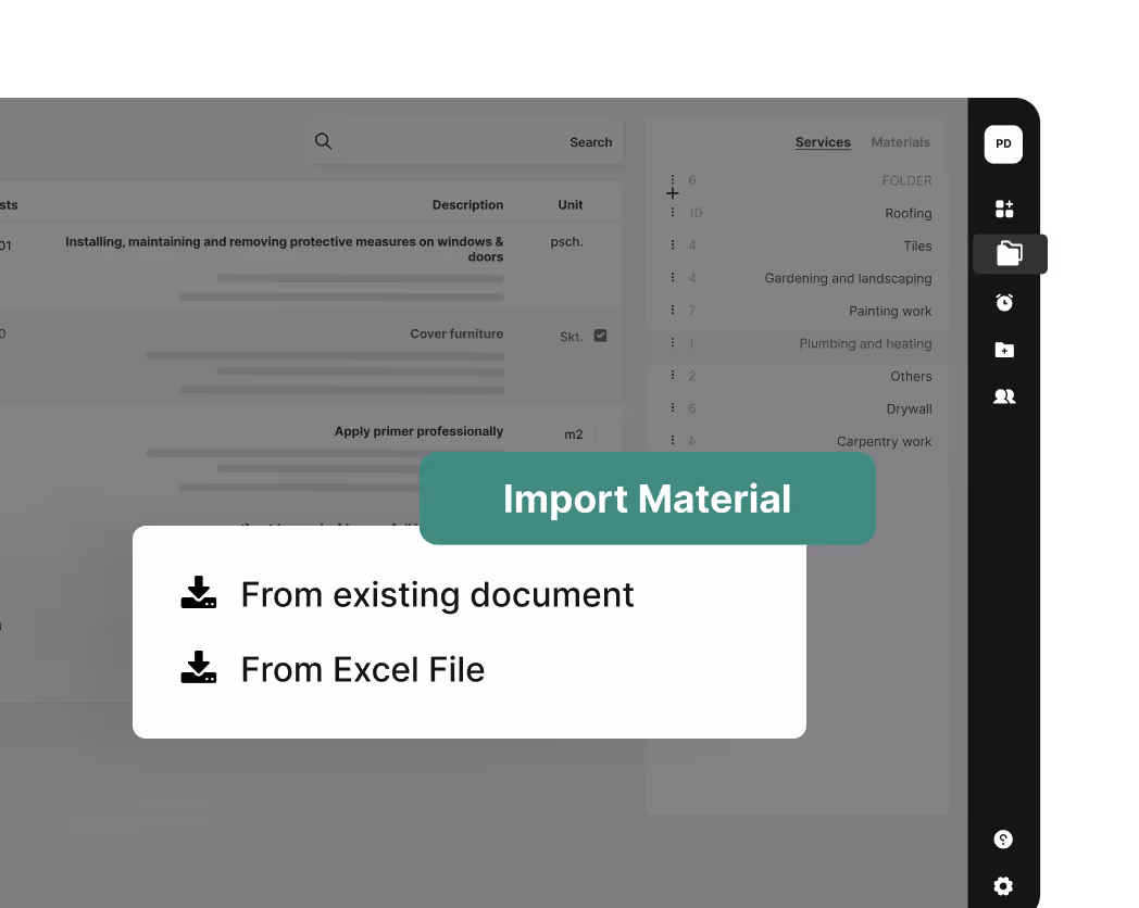 Keep all your items and materials in one place within your master data. Your personalized collection of materials helps streamline and improve your workflow. This way, essential project documents can be created quickly and accurately.