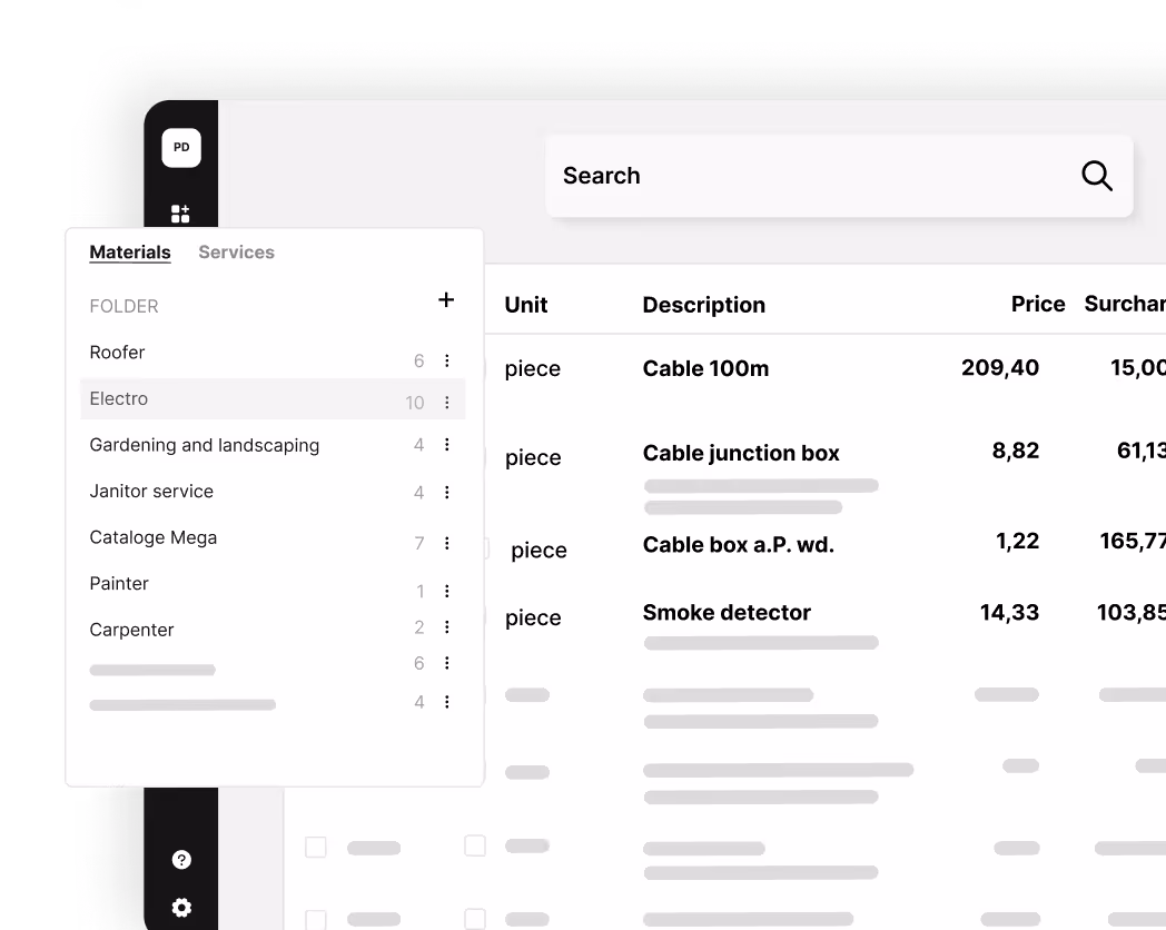 Whether it’s managing customers, materials, or services—everything is always within reach. Keep track of purchase prices, markups, and all the key details you rely on every day.