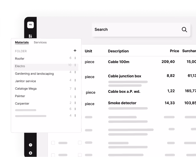 Easily calculate prices for your services and ensure every position is precisely accounted for. Once set, you can effortlessly use these calculated services to create accurate project documents.
