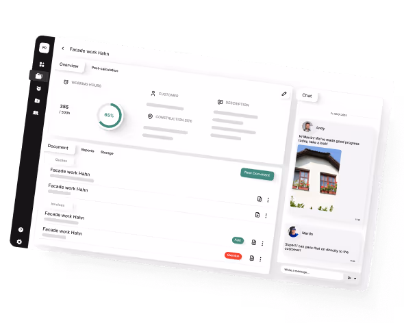 The project-specific chat enables internal communication of messages, photos, and more. Whether for the team in the office or on-site, the chat works across all devices and ensures seamless communication.
