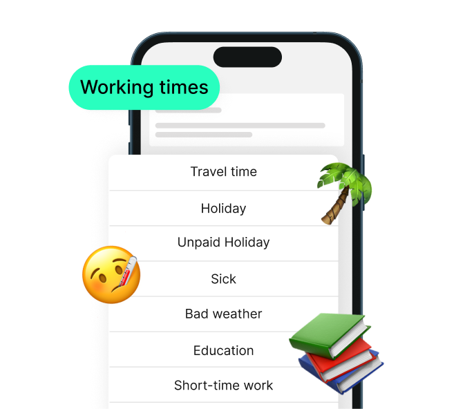 You and your team record working hours easily in the app. This way, you always have an overview of the hours worked.