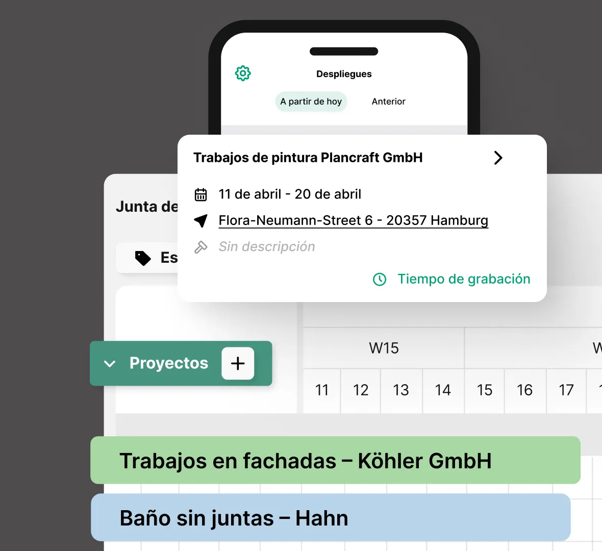 Con más empleados y proyectos, trabajar de manera eficiente se vuelve crucial. Con plancraft, tienes todo el control sobre tiempo, documentación y comunicación del proceso. Así, ahorrarás tiempo valioso en la oficina y mantendrás tu empresa organizada de manera profesional.