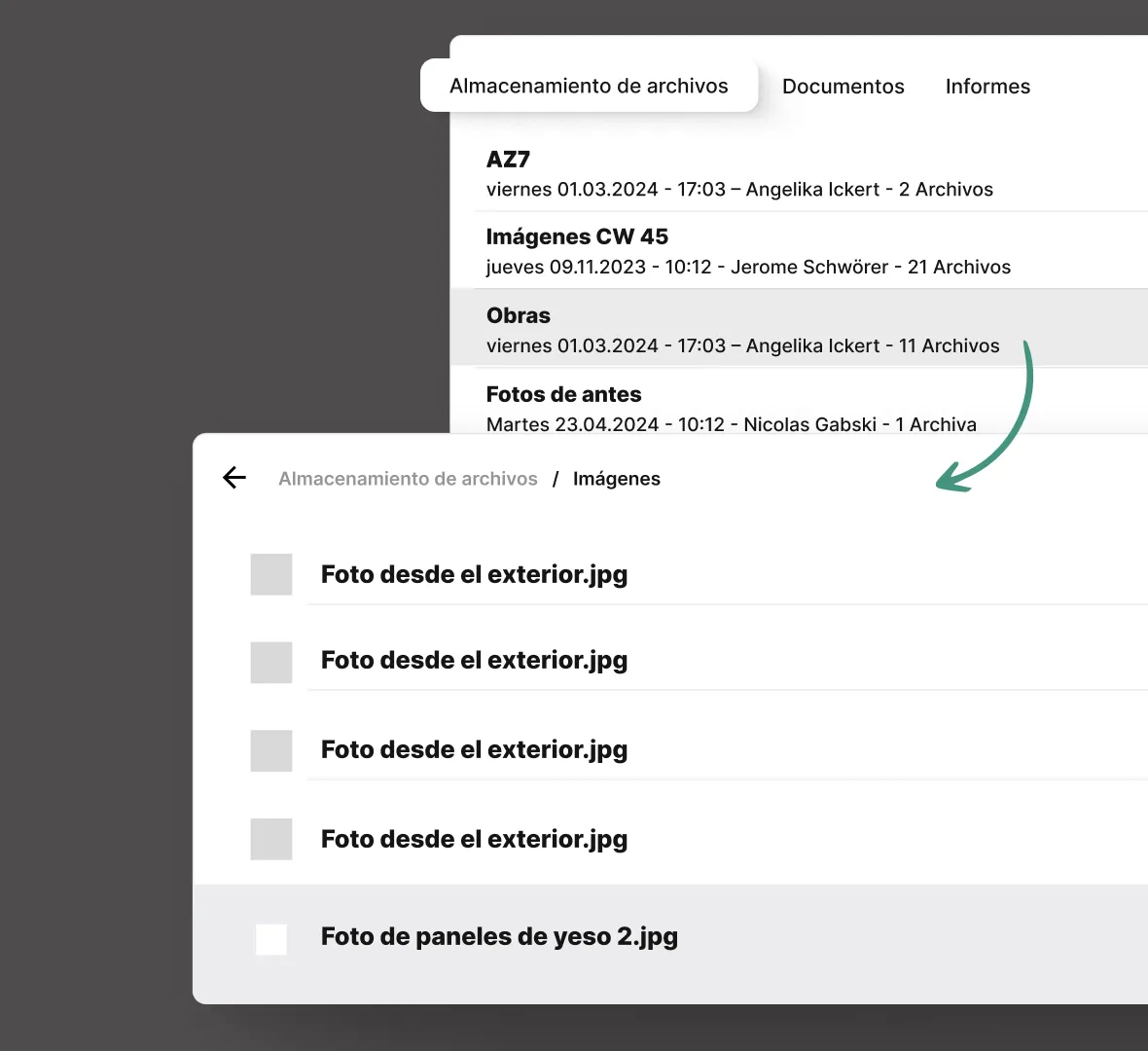 El lugar centralizado para los elementos relacionados con la obra. En la carpeta del proyecto siempre tendrás una visión clara y abarcativa de todo el proceso.
