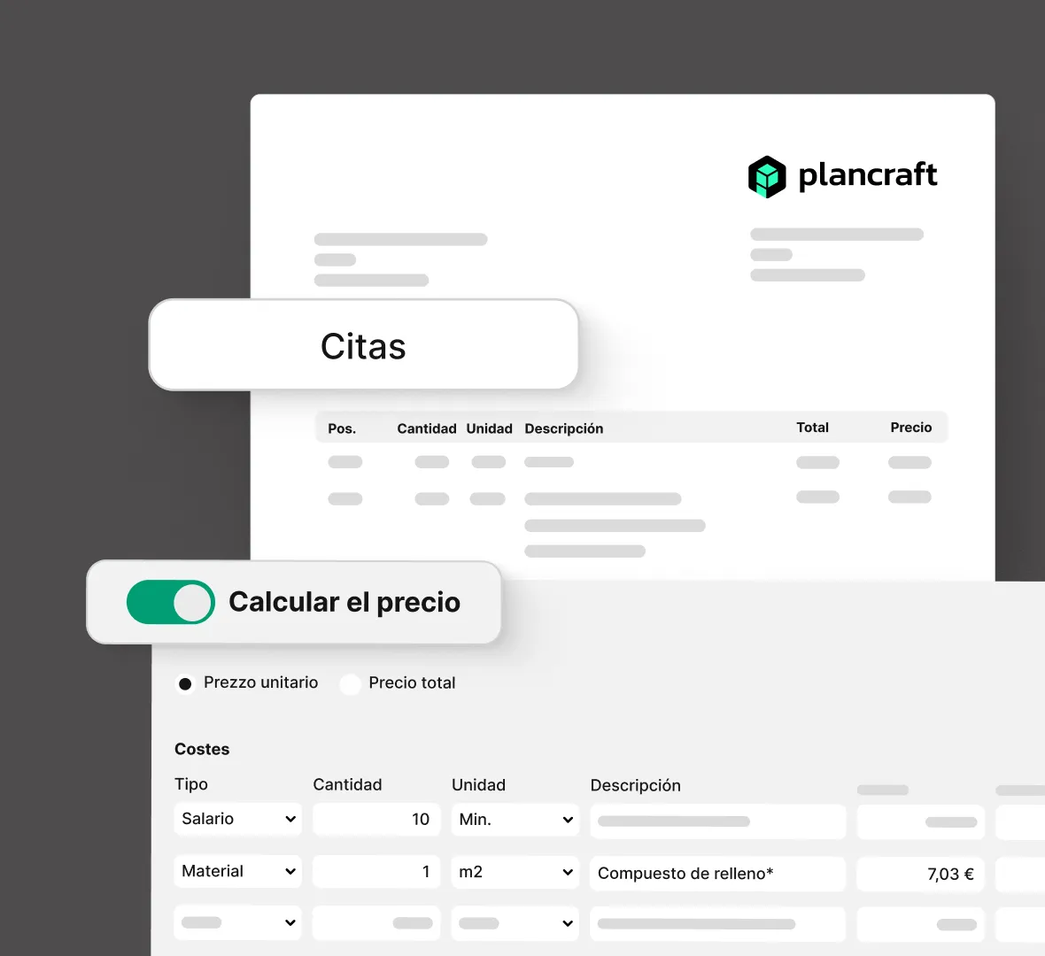 Crea presupuestos de manera rápida y precisa. Con solo unos pocos clics, puedes generar documentos y enviarlos directamente a tu cliente desde plancraft.