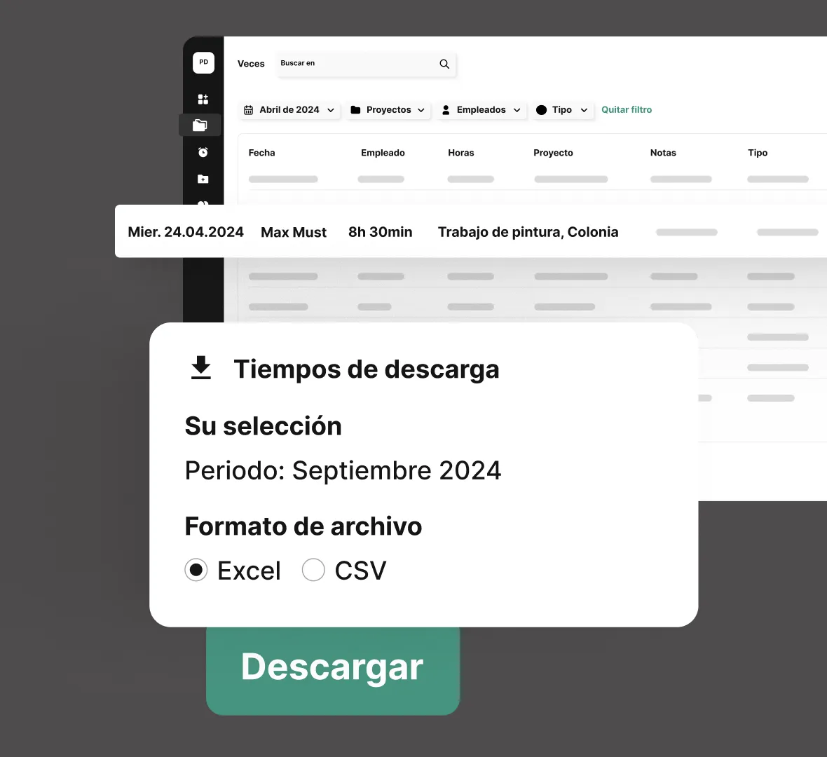 Facilita la colaboración con asesoría y gestoría fiscal gracias a la exportación sin problemas de horas trabajadas y otros datos relevantes. Esta función facilita la nómina y asegura que toda la información necesaria se transmita de manera precisa.