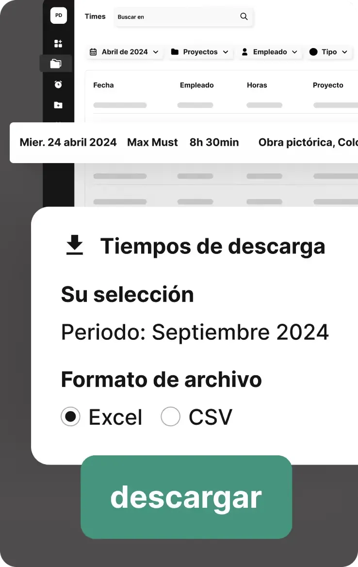 Facilita la colaboración con asesoría y gestoría fiscal gracias a la exportación sin problemas de horas trabajadas y otros datos relevantes. Esta función facilita la nómina y asegura que toda la información necesaria se transmita de manera precisa.