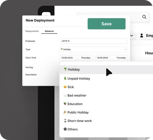 Registra de manera eficiente y clara los días de vacaciones de tus empleados o las vacaciones colectivas de la empresa. Así tendrás un control sobre la disponibilidad de tu equipo, lo que facilita considerablemente la planificación del personal.