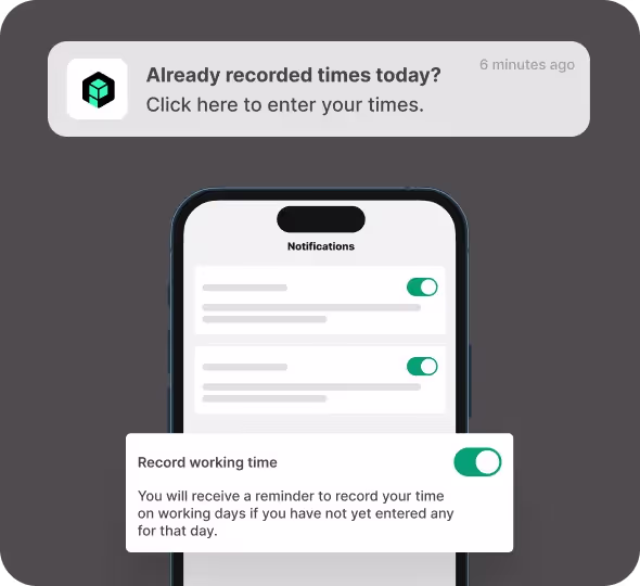 Asegúrate de que no se pase por alto ninguna novedad importante. Nuestra solución de notificaciones te informa sobre los cambios en el proyecto y recuerda a tus empleados registrar sus horas de trabajo.