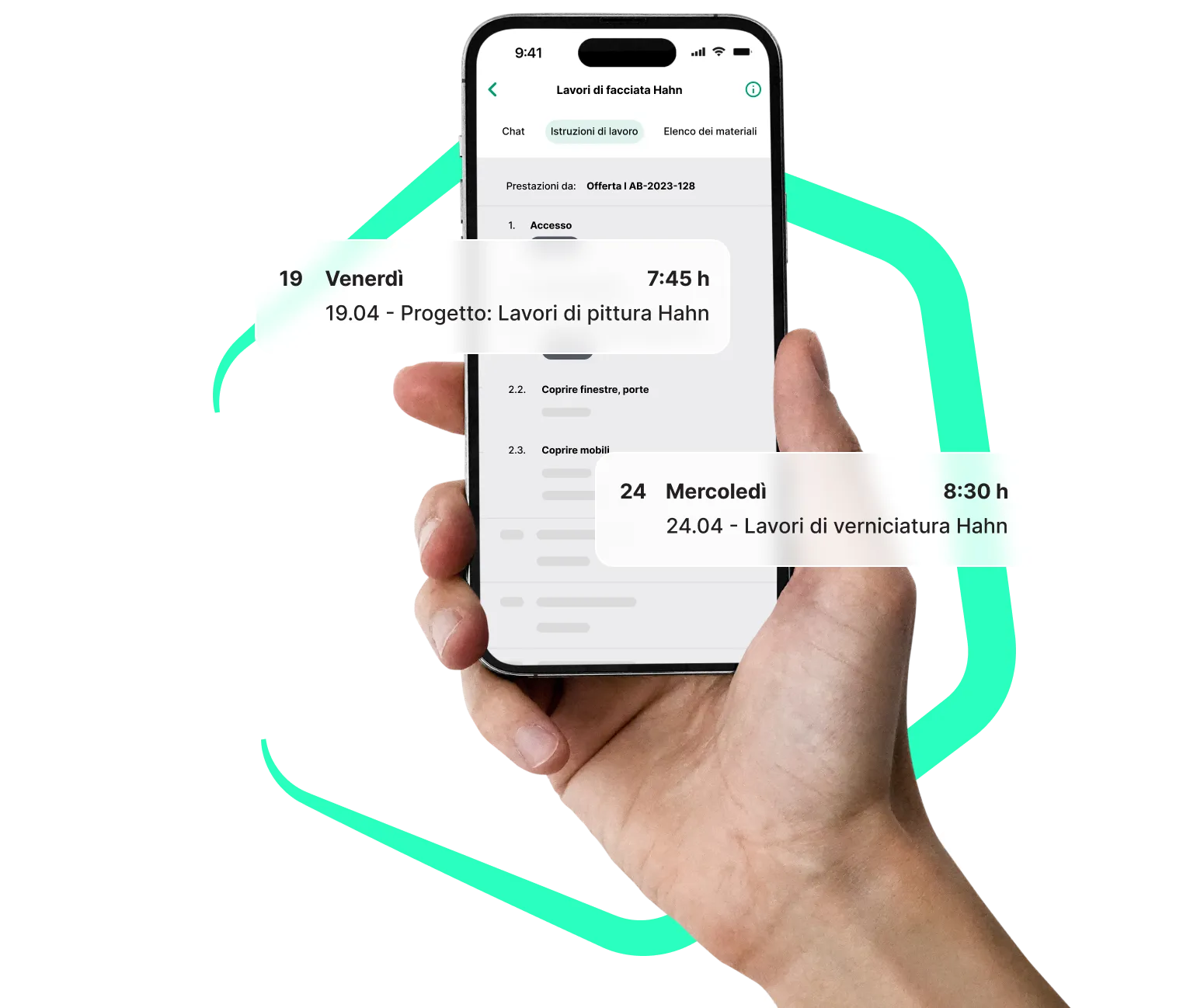Pianificazione chiara del progetto e dell'implementazione per la tua azienda. Ciò consente di tenere sempre d'occhio chi si trova in quale cantiere.