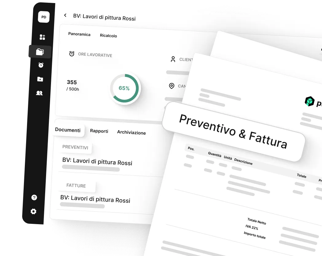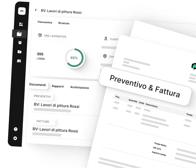 Con plancraft puoi creare tutti i documenti di commessa rilevanti: preventivi, conferme d'ordine, DDT, sconti e fatture. Dalla gara d'appalto all'ordine di riparazione, tutto è possibile. Grazie alla funzione intuitiva di trascinamento, puoi completare i tuoi documenti in pochi minuti.