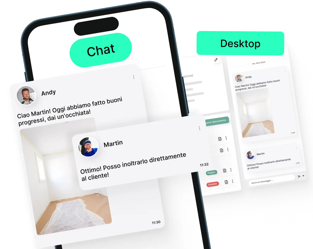 La comunicazione tra cantiere e ufficio è sempre garantita grazie alla chat basata sui progetti.