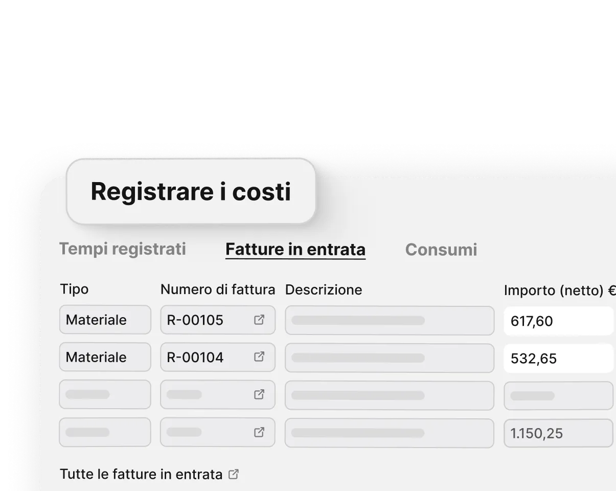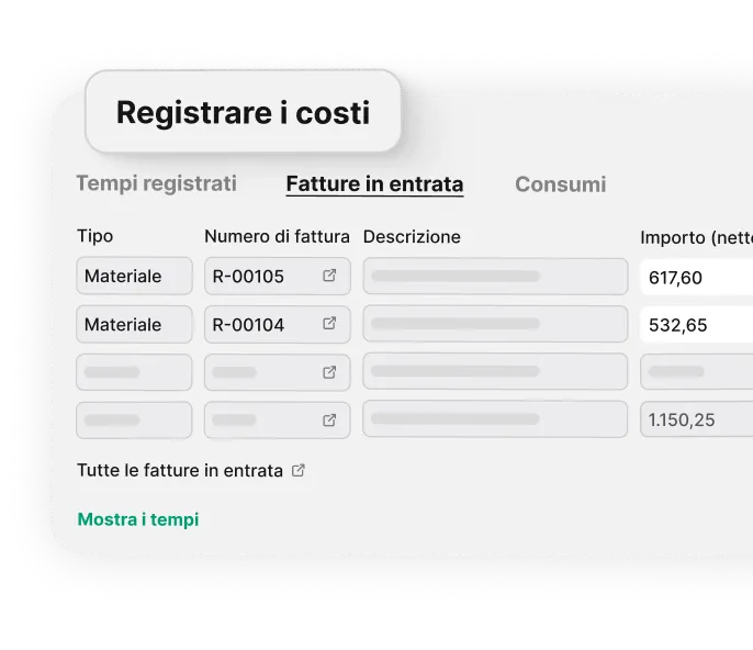 Non appena assegni una fattura a un progetto, i costi appaiono automaticamente nel consuntivo. In questo modo puoi essere certo che tutte le spese siano registrate in modo completo e corretto, senza lavoro duplicato o errori di battitura.