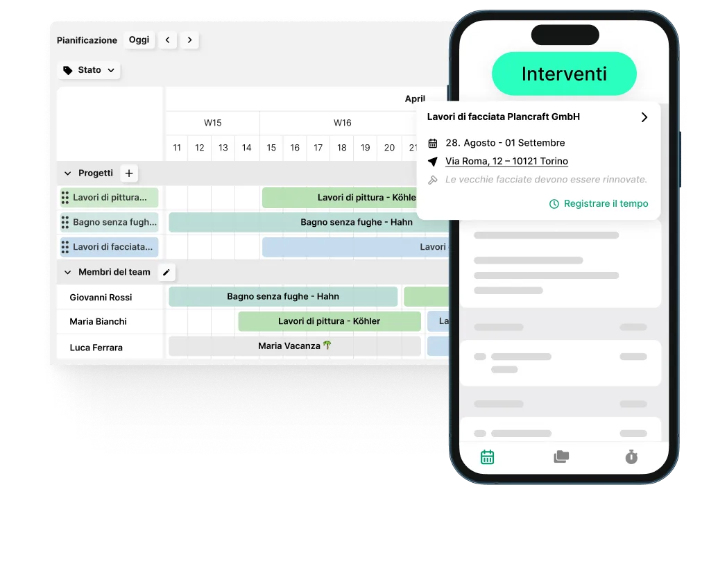 Plancraft cresce insieme alla tua attività. Con i fascicoli di progetto e le ricalcolazioni, puoi monitorare i tuoi profitti. La tabella di pianificazione permette una gestione semplice dei tuoi dipendenti e dei progetti, assicurando che anche le grandi imprese restino ben organizzate e redditizie.