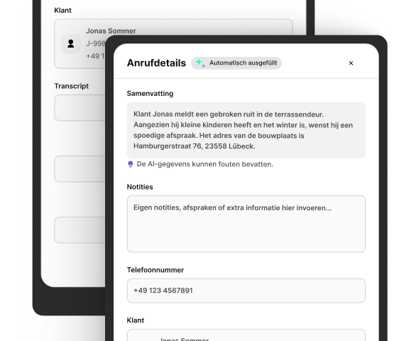 PORTA herkent bestaande klanten en wijst oproepen automatisch toe. Nieuwe contacten worden direct aangemaakt - inclusief alle relevante informatie uit het gesprek. Zo ontstaat er een schone klantendatabase, zonder dat je iets dubbel hoeft in te voeren.